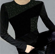 Pullover, cotton spandex with rivets in gold, silver + rosegold.