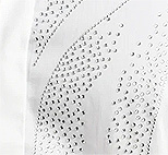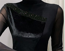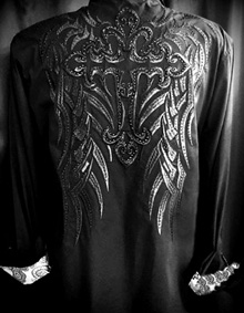 Verzierungen: Stickungen, kleine Nieten; klare oder schwarze Kristalle, Metallteilchen,