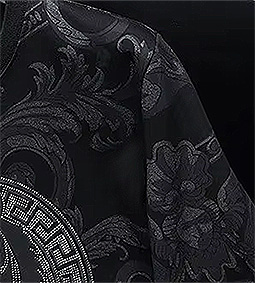 fleur-de-lys motifs, swords, crowns, fabric-flockings, rhinestones, knight motifs,